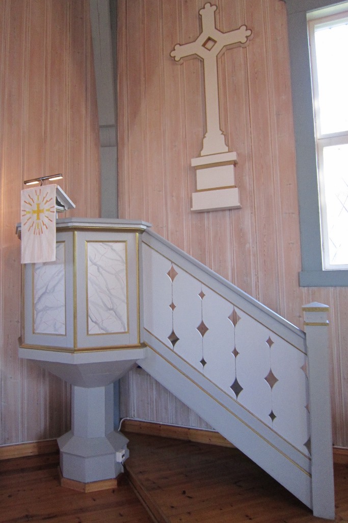 Kirken har utvendig panel. Den ble omfattende restaurert i 1901, da den fikk innvendig panel og sentralt inventar som den altertavlen og døpefonten som fortsatt er i bruk. Til hundreårsjubileet var det ny omfattende restaurering. Blant mange endringer da var igjen innvendig panel, og det høye inngangspartiet ble revet og erstattet med et lavere. Vinduene ble også endret mot det opprinnelige, og det samme gjelder benkene.