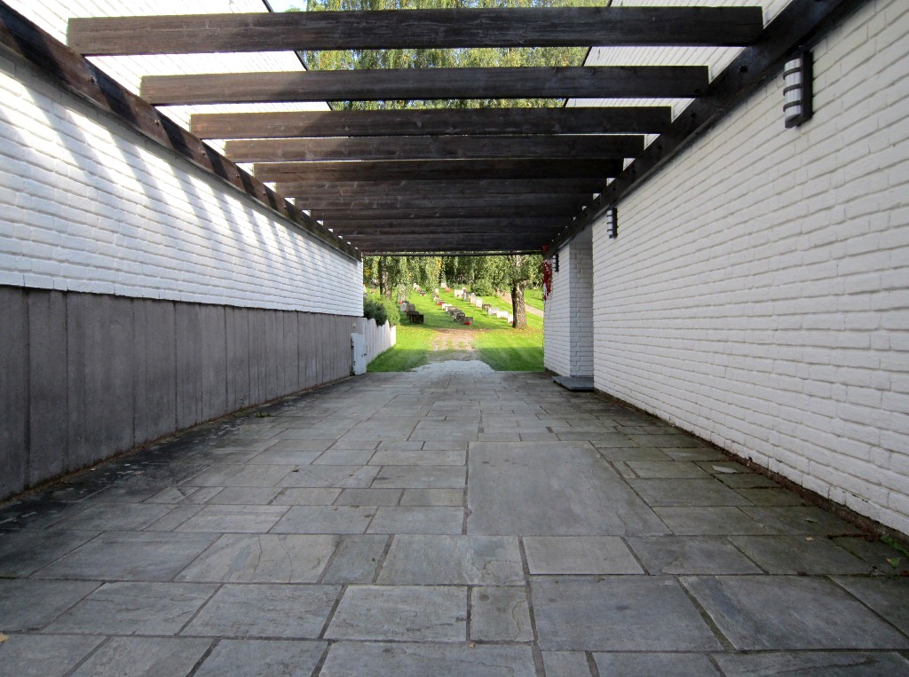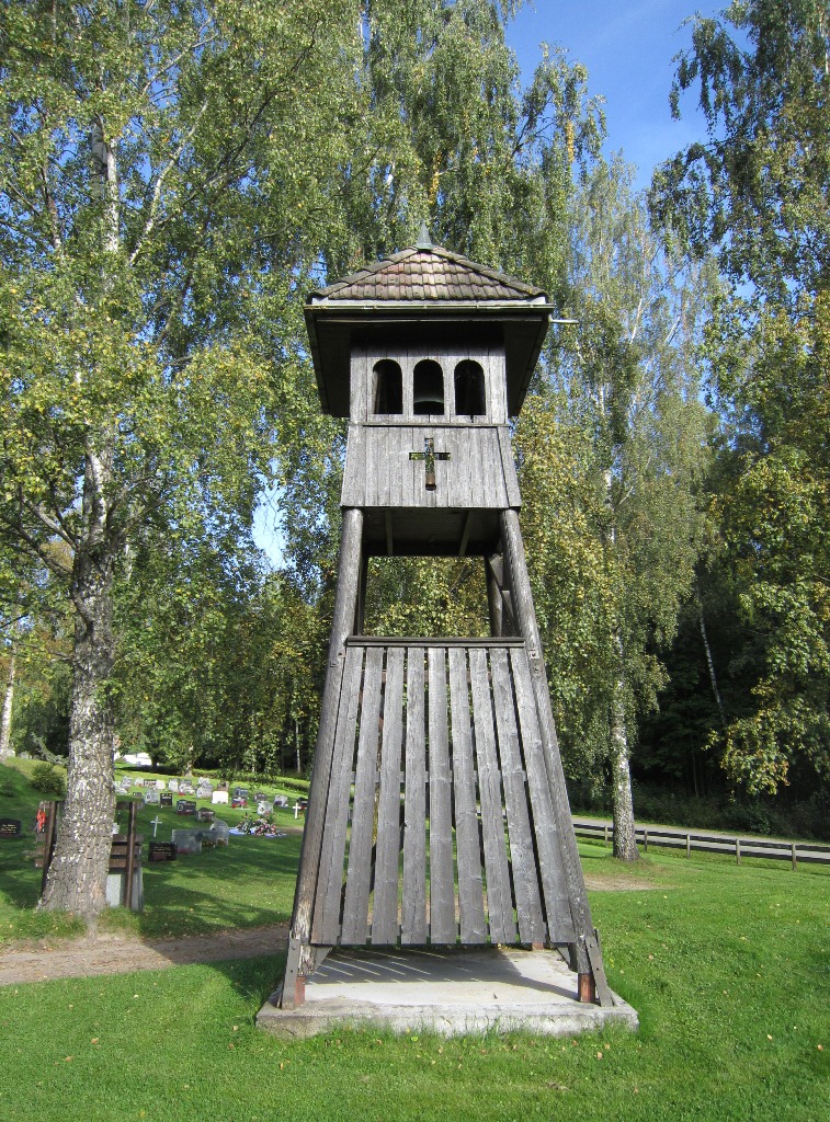 Kirken er omgitt av kirkegården.