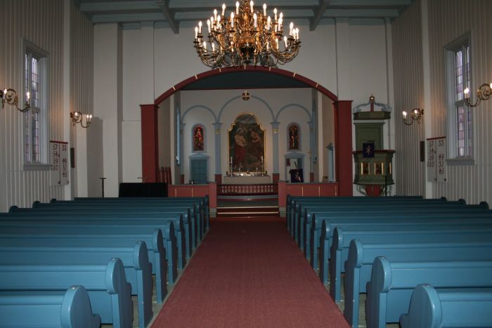 Altertavlen har en kopi av Tidemands bilde Jesu dåp i Trefoldighetskirken i Oslo, utført av Ragnvald Hjerlow. Prekestolen og døpefonten er ifølge kirkeleksikonet fra 1863, altså fra kirkens byggeår. Kirkeklokken er fra 1861 og sies å være støpt av Kailor Wickers & co (muligens menes dette selskapet). Kirken hadde inntil nylig et orgel fra Norsk Orgel- og Harmoniumfabrikk fra 1969, men det later til at det fungerte dårlig. I 2013 ble det meldt at kirken hadde fått et digitalt orgel.