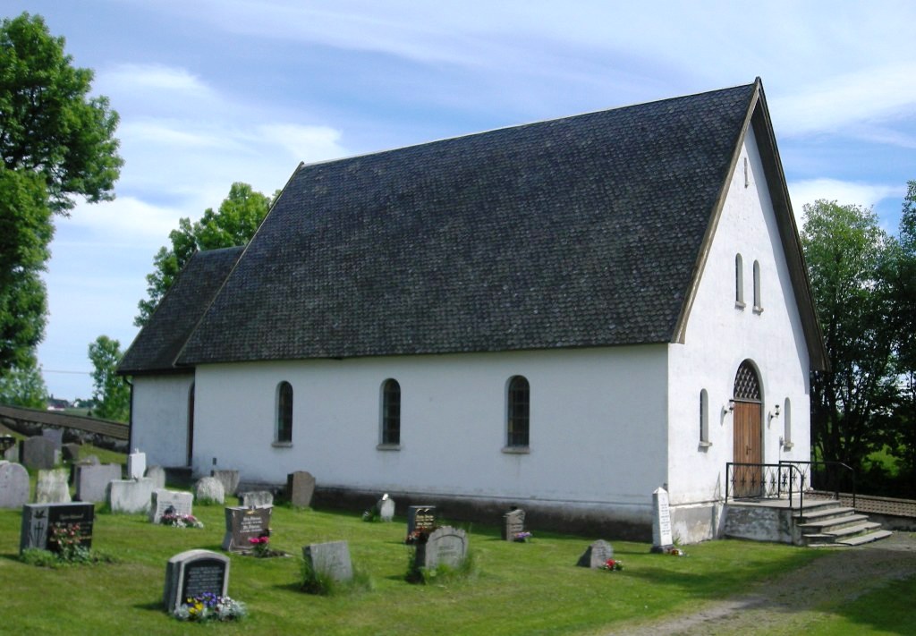 Kirken vi ser i dag, stammer fra midten av 1200-tallet og feiret 750-årsjubileum i år 2000. Antallet sitteplasser i dag er ca. 400. Byggingen later til å ha startet med koret, slik at avbruddet i kirkelige aktiviteter skulle bli kortest mulig, og den nye kirken later til å være bygget rundt den gamle. Dette skal ha bidratt til at orienteringen ikke er strengt vest-øst. Avviket er ca. 23 grader i nordlig retning. I utgangspunktet har vi å gjøre med en langkirke med rektangulært skip og mindre, rett avsluttet kor. Et sakristi på nordsiden av koret kom til på 1300-tallet. I strukturen i muren utvendig kan vi en rekke steder se hva slags stein som er brukt: litt uregelmessige steiner fra den tidligere kirken eller rettere tilhuggede steiner. I skipets vestvegg er det for eksempel gammelstein nederst samt i gavlen, med “ny” stein imellom, og slik kan man ta for seg de forskjellige veggene.