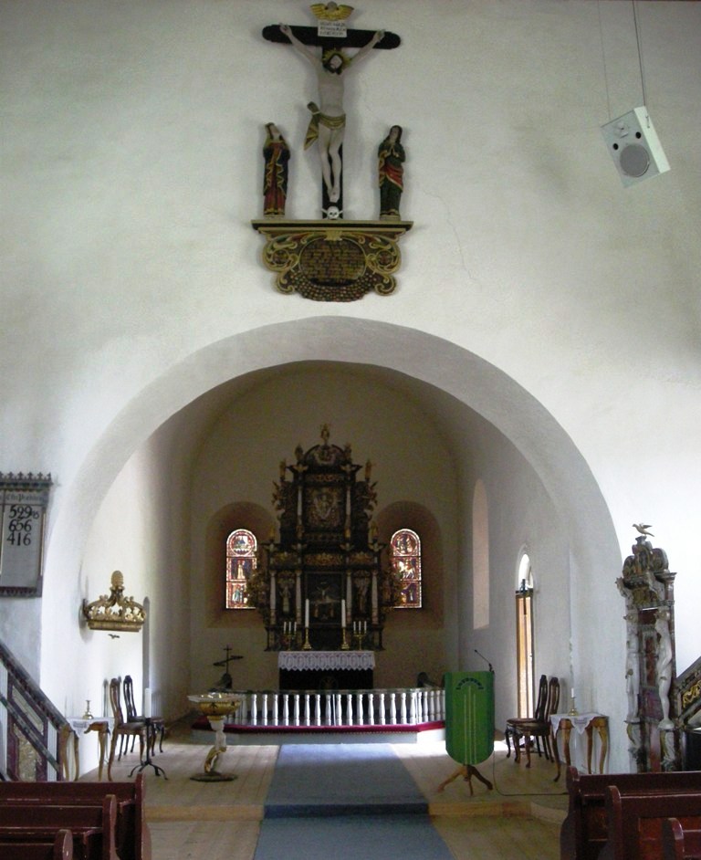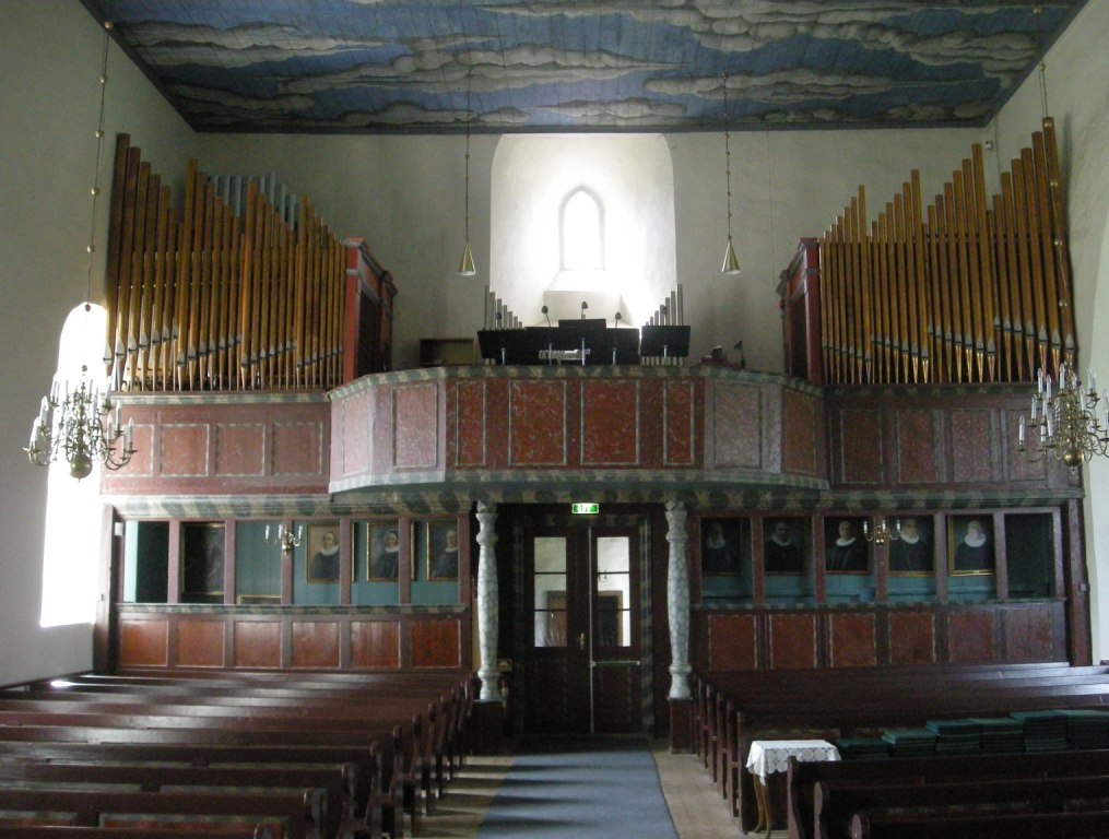 I vest er det orgelgalleri, men utseendet skal ha blitt endret gjennom tidene. Dagens orgel er ifølge orgelregisteret et Jørgensen-orgel fra 1958, og kirkeklokkene er ifølge kirkeleksikonet fra 1623 og 1751. Den som undersøker saken nærmere, vil finne mange flere detaljer, og det var restaurering og begrensede arkeologiske utgravninger i 1986.