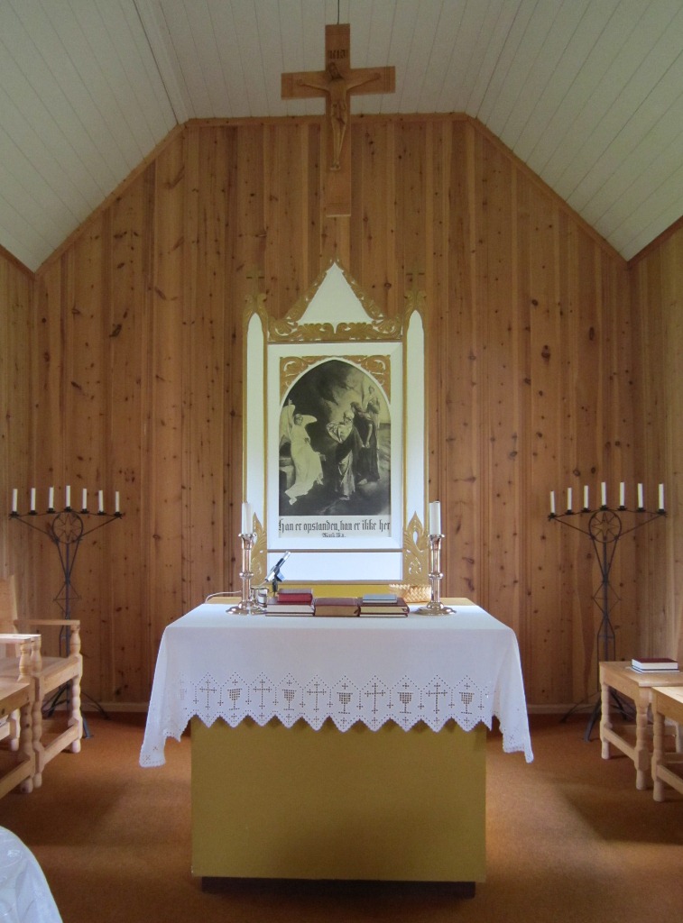 Altertavlen (1920) har et bilde av kvinnene ved graven som fremstår som nærmest plakataktig. Det er kopiert etter Axel Enders bilde i Molde domkirke. Teksten under bildet lyder: «Han er opstanden, han er ikke her.» (Mark 16, 6 og flere andre tekststeder.) Også prekestolen og døpefonten er fra 1920, førstnevnte laget av Mikkel L. Midtdal.
