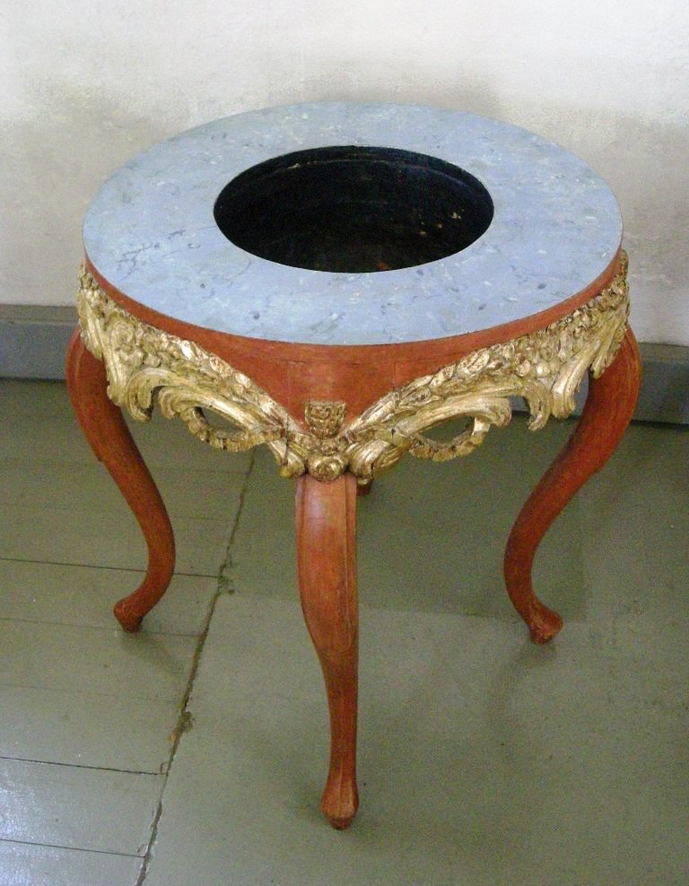 Vi finner også deler av den opprinnelige døpefonten fra Pihls tid i kirken. Den ser ut som et bord med en kum og en nedhengende kule på undersiden. Etter Dues oppussing ble den en stund brukt som røkebord i et privathjem, før den fant veien tilbake til kirken. Til høyre for døpefonten er et relieff av nattverden, trolig skåret i 1689 av Johannes Skraastad som nedre del av en altertavle til den tidligere kirken.