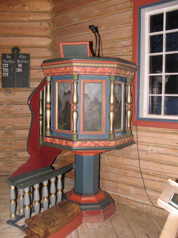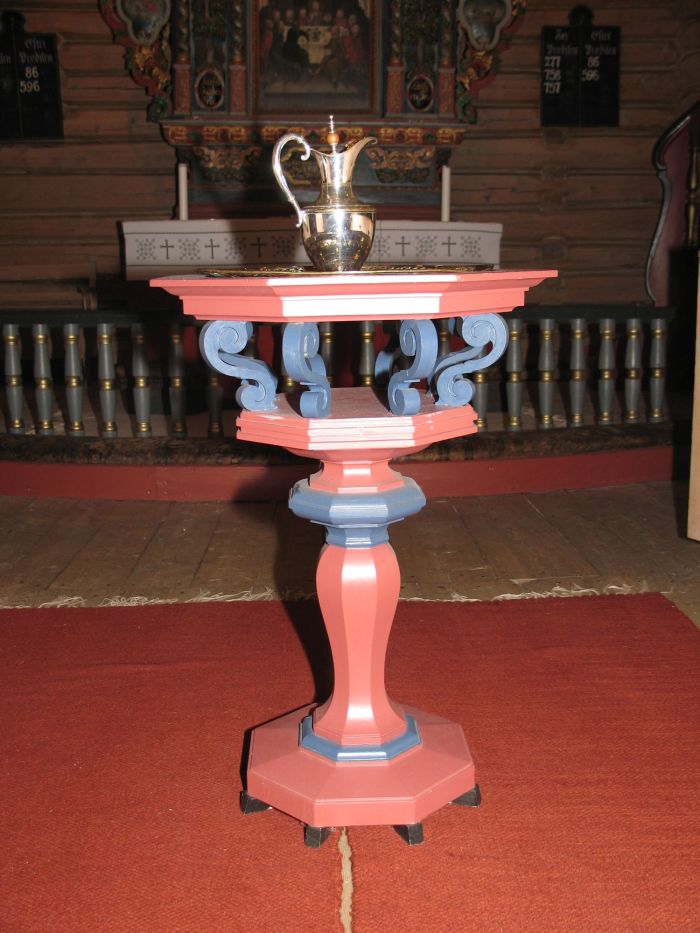 Prekestolen og døpefonten ble laget til hundreårsjubileet av henholdsvis Paul Ulvsund og Trygve Svisdal. Tidligere prekestol og døpefont er lagret i kirketårnet. Døpefatet som brukes, er det fra 1848.