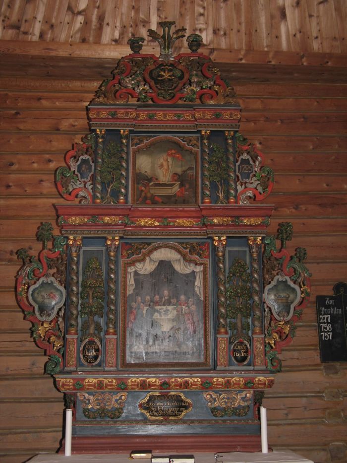 Den barokke altertavlen er laget av Peder Knutsen Kjørsvik i 1725 og malt av Rasmus Teilgård. Den ble brukt i Kristiansund kirke til 1848 og så kjøpt og tatt med til Ålvundeid. I midten av tavlen er malerier av nattverden og oppstandelsen. Nattverdsbildet er flankert av relieffer av «Kundskabens Træ» og «Livsens Træ», og også oppstandelsesbildet er omgitt av trær. Teksten på predellaen lyder: «Jeg toer mine hender og går omkring ditt alter, herre» (jf. Sal 26, 6).