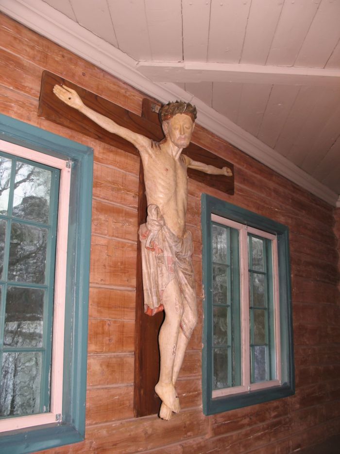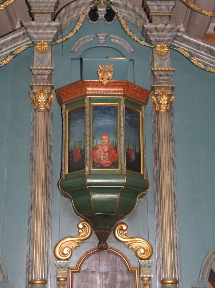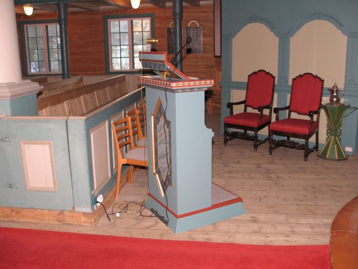 På galleriet henger et krusifiks fra slutten av 1200-tallet. På veggene henger tre presteportretter av Anders Leem, Anders Heiberg og Hans Jakob Wille.