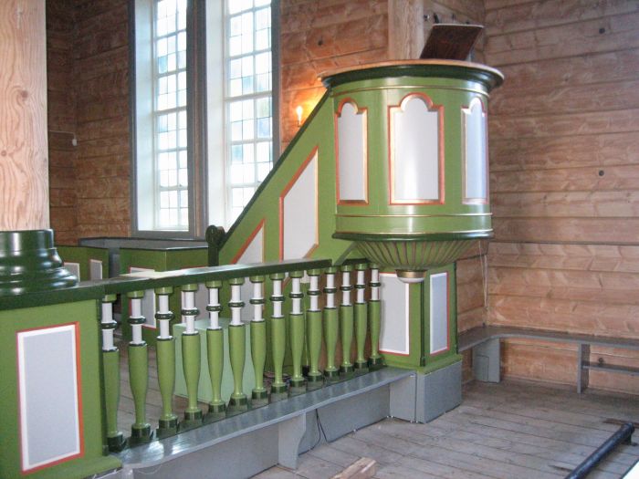 Prekestolen er helt i sørkant av korskillet og har oppgang fra koret. Den skal være på alder med kirken, i likhet med døpefonten og dåpsfatet. To skulpturer av Anders Svor — «Mot morgenrøden» og «Bøn» — fant veien til kirken i 1999. Svor er gravlagt på kirkegården og har et høyt gravminne med portrettrelieff. Et seks eller syv stemmers Olsen & Jørgensen-orgel fra 1907 ble i 1968 avløst av et tolv stemmers orgel fra J.H. Jørgensen, men det later til at det gamle prospektet ble beholdt. Kirkeklokken ble omstøpt av Andreas Sundt i 1845 etter en klokke fra 1659.