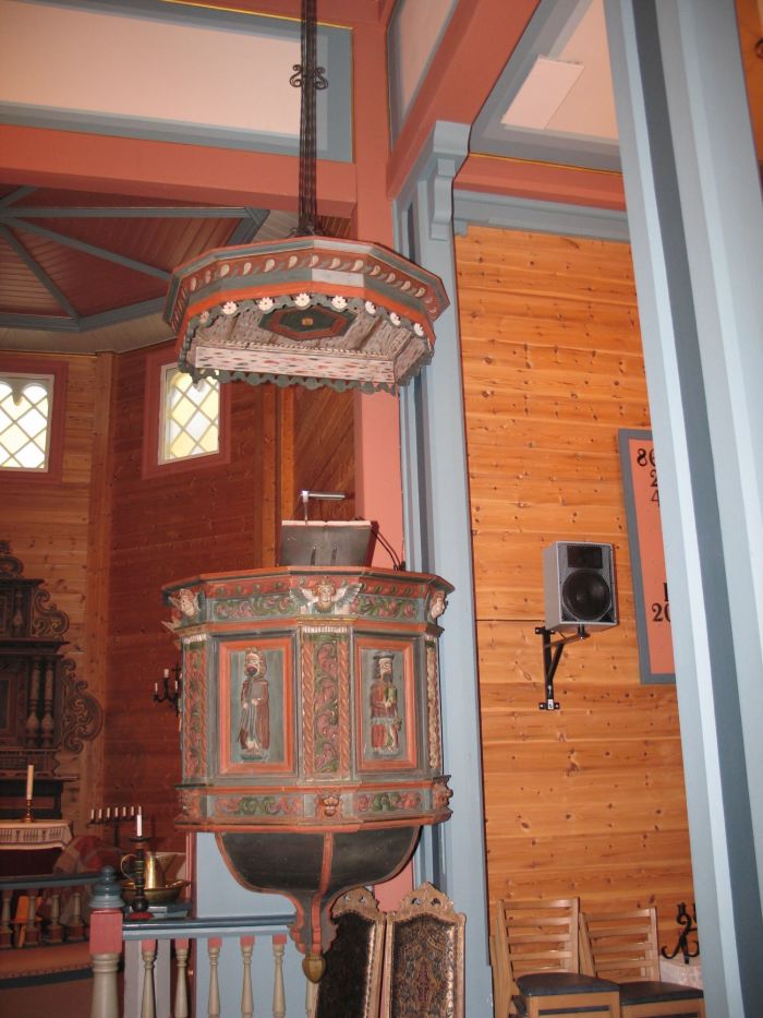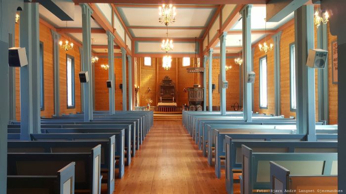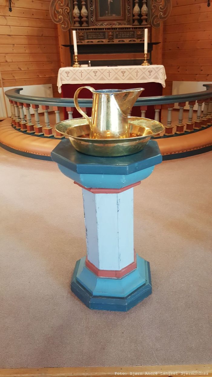 Den gamle prekestolen står nå i koråpningens høyrekant. Ifølge jubileumsboken er den trolig skåret av Peder Knutsen Kjørsvik tidlig på 1700-tallet. Litteraturen sier ikke mye om døpefonten, men messingfatet skal være overført fra gamlekirken (i likhet med en sølvkalk fra 1630 med disk). Kirkeklokkene er fra 1878 og 1880. Ifølge Norsk orgelregister er orgelet bygget av Brødrene Torkildsen i 1914.