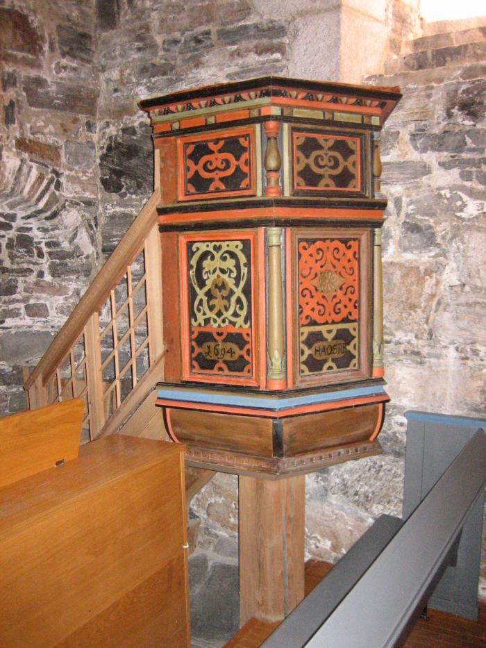På alteret i koret står en utskåret gruppe i tre som viser nedtagelsen fra korset. Denne antas å ha inngått i et større arbeid og skal være laget i Nederland eller Tyskland i middelalderen. Alterstykket ble opprinnelig oppsatt i den nye Vanylven kirke på Slagnes, men er tilbakeført. Tilbakeført er også en prekestol fra 1630. Den står i skipets sørøstre hjørne, mens den opprinnelige oppgangen er i bruk i et privathus. Andre gjenstander fra kirken befinner seg på museer. For eksempel finnes det et antemensale som viser Maria med Jesusbarnet, og en Jetmund-figur av tre i de kulturhistoriske samlingene i Bergen museum, og en messehagel fra 1700-tallet er å se i Valborgsamlingen på Åheim. I kirkerommet står noe som ser ut til å være et elektronisk orgel.