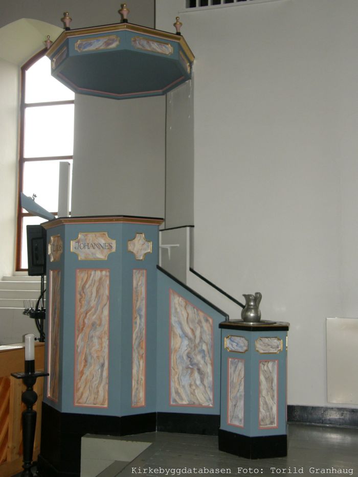Annet inventar er på alder med kirken. Det gjelder prekestolen (åttekantet, til venstre i koråpningen og med oppgang fra koret), døpefonten (sekskantet) og kirkeklokken (støperi ikke oppgitt). Ifølge orgelregisteret har kirken et Vestlandske-orgel fra 1965.