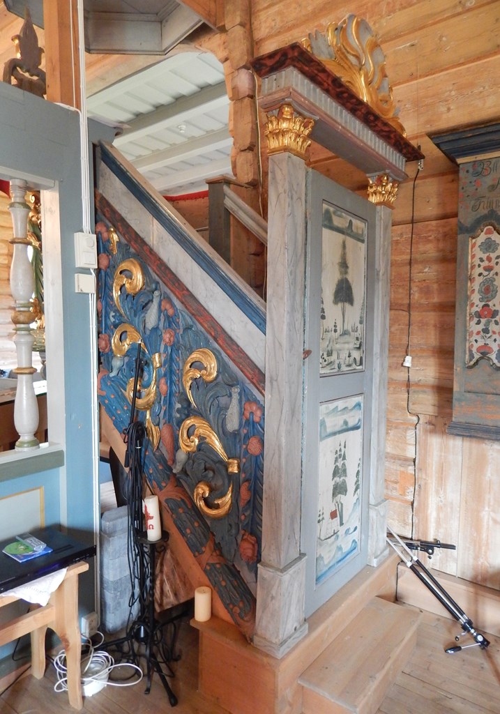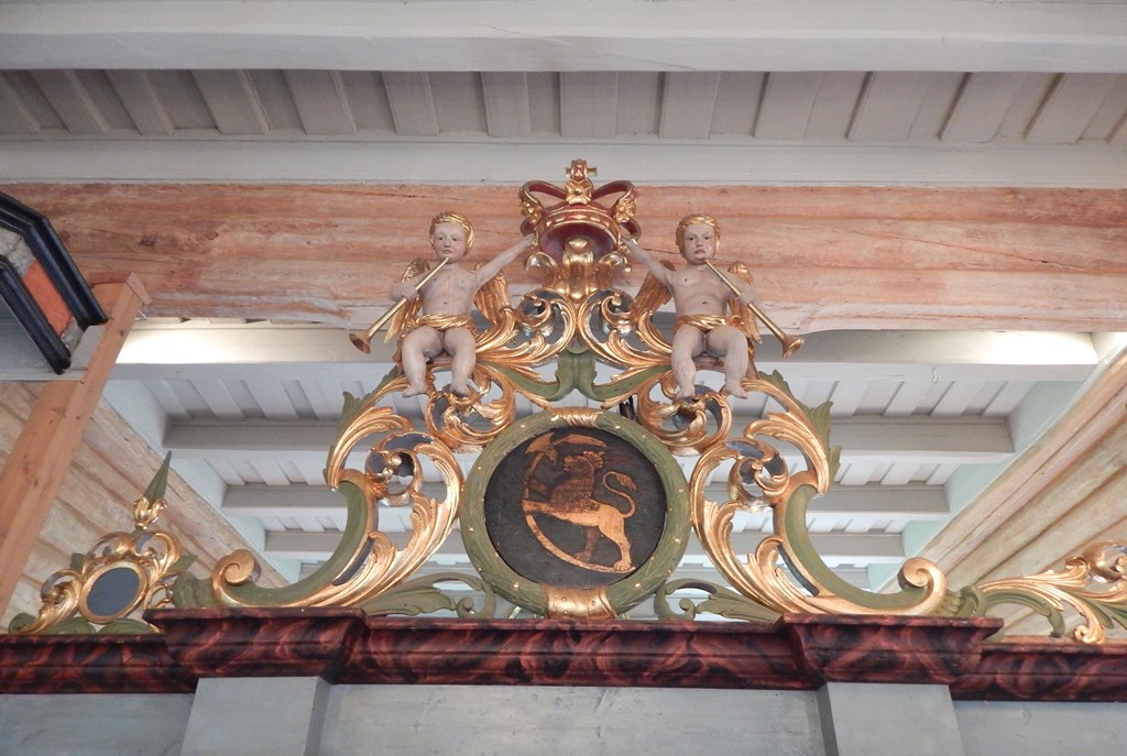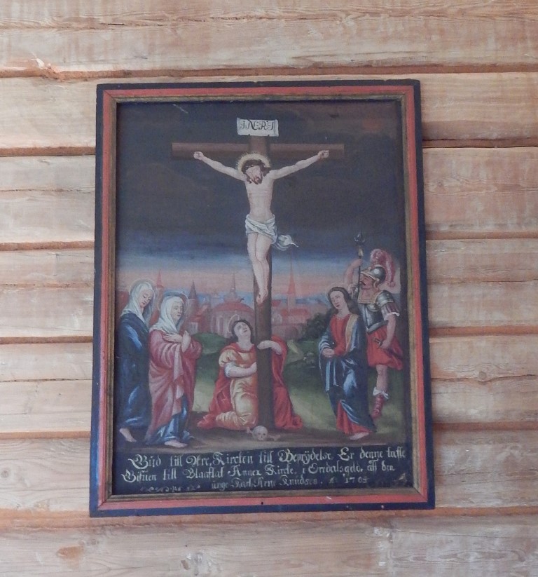 Korskillet skal være basert på Lars Borgs korskille i Fluberg kirke. Deler av det ble fjernet på 1800-tallet, men kom tilbake ved restaurering i 1974–75. Også her ble kongemonogrammet fjernet i 1818 og erstattet med en medaljong. I dag er det monogram på reversen — tilsynelatende for en Kristian (Christian), men uten at undertegnede gjenkjenner det som Kristian VIIs.