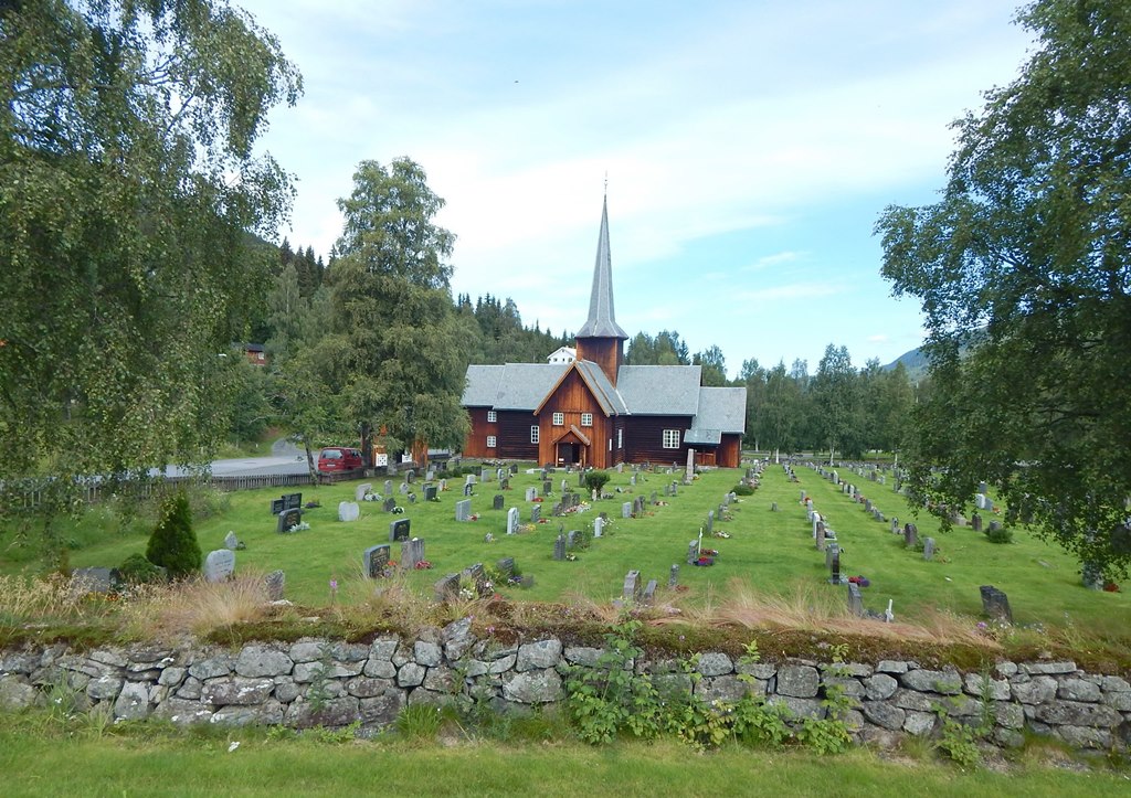 Kirkegården er utvidet en rekke ganger, så som i 1830-årene, 1895, 1944, 1964 og 1990 (innviet 1991). Den har tidligere vært omgitt av steinmur. Så ble det satt opp stakitt mot vest, erstattet med et gjerde av brede, brunbeisede bord i 1974. Parsellen fra 1990 er omgitt av steingjerde. Sør for kirken står et portalhus på typisk valdresmanér. Det har saltak og en liten tårnkonstruksjon og inneholder redskapsrom i vestre del og gjennomgang (port) i østre. Tidligere stod det flere staller ved kirken. I 1925 ble de erstattet med én stallbygning der kommunehuset ligger i dag. Denne ble revet i 1955. Et bårehus tegnet av Magnus Wold ble tatt i bruk i 1965 og ligger nord for kirken, vis-à-vis kommunehuset. Det er et enetasjes bygg i bindingsverk som inneholder bårerom, redskapsrom og toaletter. På kirkevangen rett utenfor gjerdet står en minnebauta over valdriser som var med i krigen mot svenskene under Napoleonskrigene, avduket 17. mai 1914. Samtidig ble det avduket en lignende bauta ved kommunehuset.