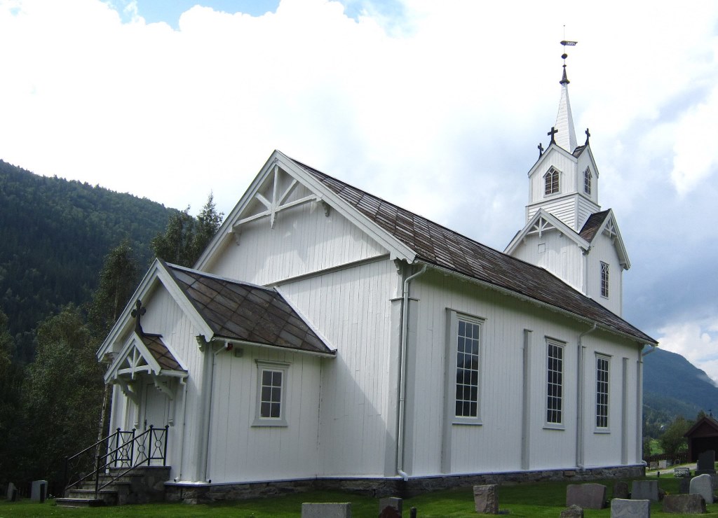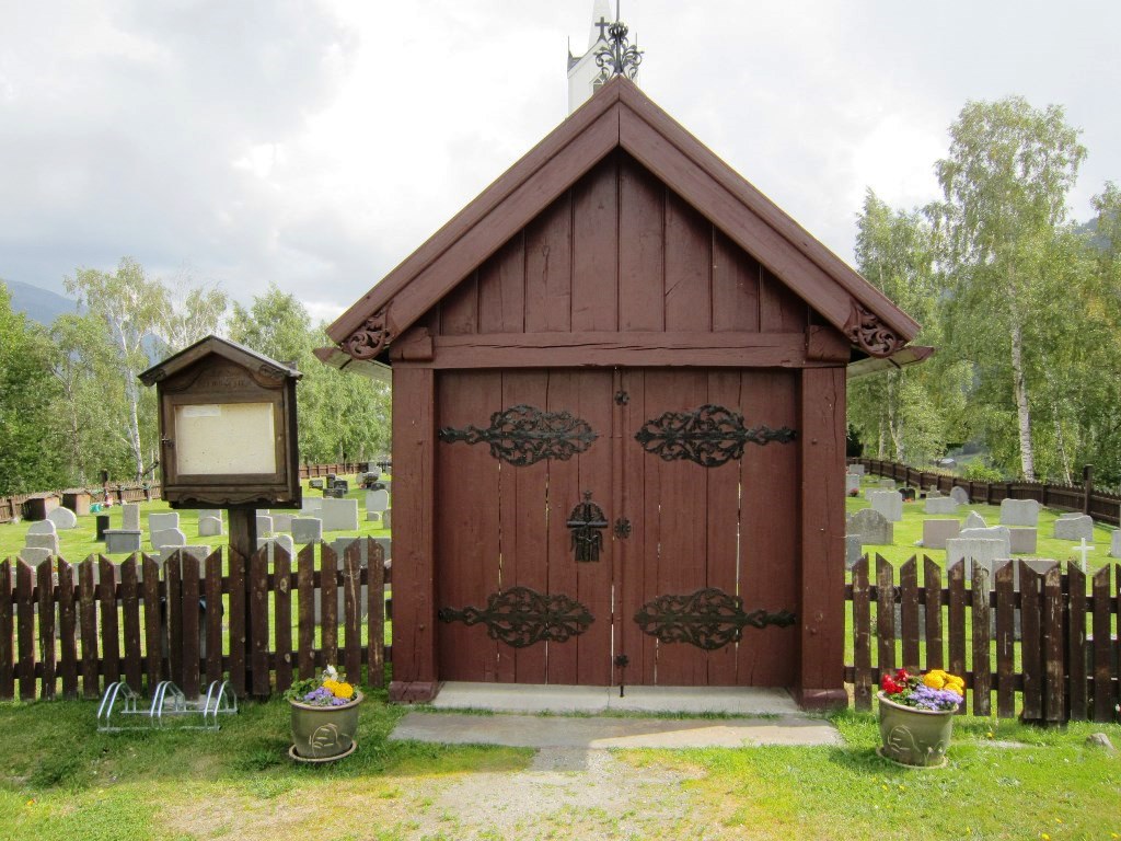 Kirken er omgitt av kirkegården, der man finner graver for flere spillemannsfamilier. Den nåværende kirkegårdsporten ble laget av Åsmund og Reidar Nyrnes i 1944, og sistnevnte har også smidd spir, klinke og beslag til porten.