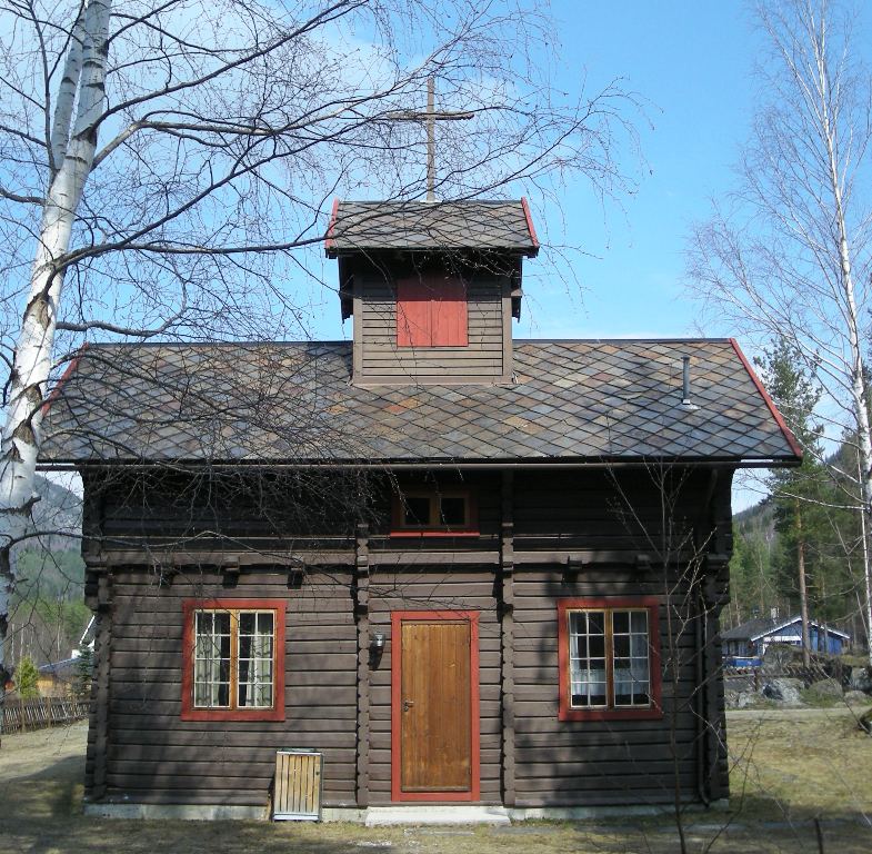 Dette ble gjenoppført på kapelltomten i 1977–78 under ledelse av Jon Rukin, som gjerne krediteres som kapellarkitekt (avbildet her etter at grunnmuren var fullført). Etter flyttingen fikk enetasjesdelen et lite tillegg (formodentlig i bindingsverk, med stående panel), og toetasjersdelen fikk en slags takrytter med kors på. Ved gjenoppføringen ble det utført mye dugnadsarbeid, og i forbindelse med kapellet nevnes gjerne mottoet «fra godshus til gudshus».