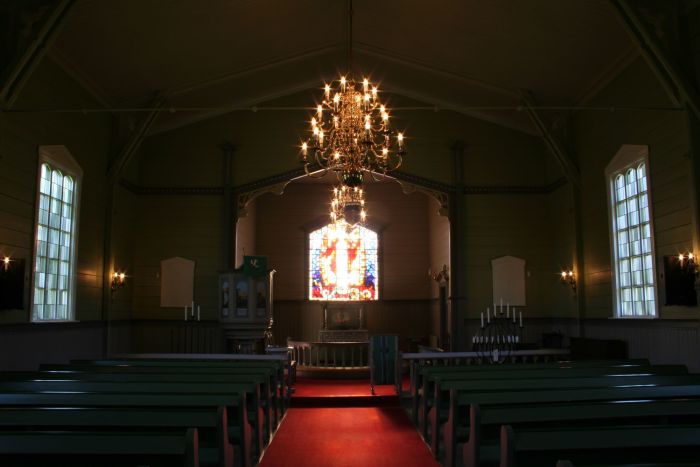 - Riksantikvarens Kulturminnesøk om dagens kirkested og det gamle kirkestedet
