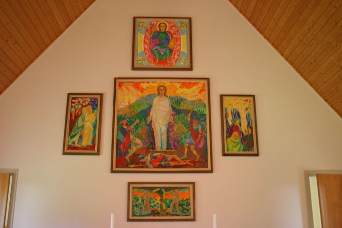 Altertavlen (av Jardar Lunde) har form av fem bilder montert på korets fondvegg. Døpefonten er i samme stil som prekestolen. Orgelet på galleriet er ifølge Norsk orgelregister et seks stemmers Grönlund-orgel som er på alder med kirken, som ellers sies å ha to klokker fra Olsen Nauen. Bak i kirken henger et kristusbilde malt av Bjørn Bjørneboe som tidligere hang på en skole på Kjøtta.