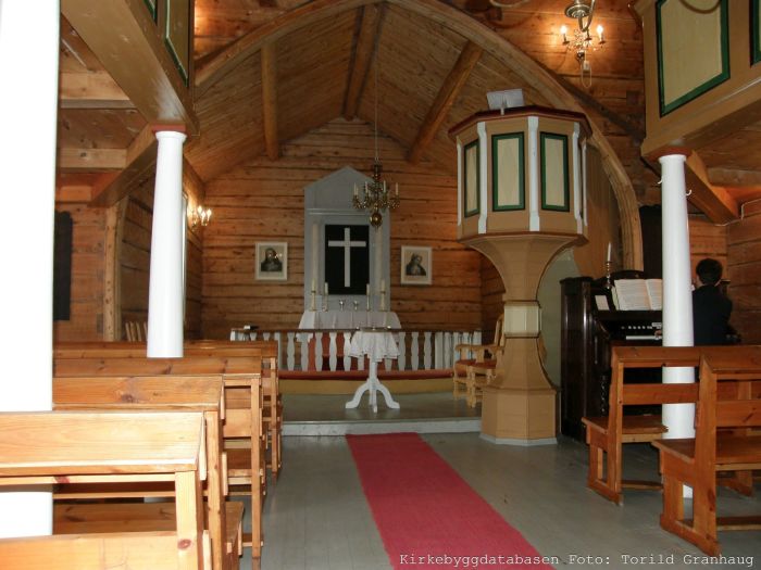 Før 1881 hadde kirken et krusfiks på alteret. Altertavlen har et hvitt kors på svart bakgrunn. På hver side av altertavlen henger et bilde som ble observert i sakristiet i 1932. De viser henholdsvis Jesus og Jomfru Maria.