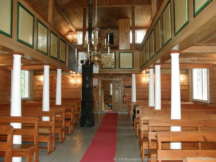 Kirken har søylebårne gallerier innenfor inngangen og langs langveggene. Søylene er hvite, men for øvrig er kirkerommet i stor grad preget av trehvitt. Koret åpner seg mot skipet i sin fulle bredde. Det har spissbuet åpning og himling, og korgulvet er hevet et lite trinn over skipets gulv.