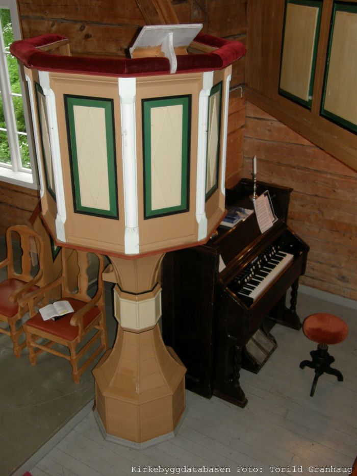 Den åttekantede prekestolen står i koråpningens høyrekant og har oppgang fra koret. Den er i likhet med døpefonten på alder med kirken. Et dåpsfat er ifølge kirkeleksikonet fra 1747 og en kirkeklokke fra 1830. Orgelet ble bygget av Henrik Brinck Hansen i 1995. Det avløste et harmonium fra rundt 1960.