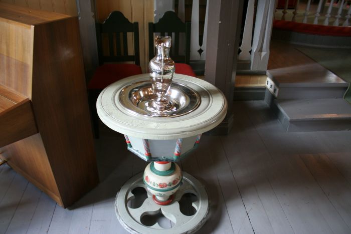 Den sekskantede prekestolen med evangelistbilder har samme datering. Døpefonten sies å være fra 1700. To kirkeklokker skal være fra 1924. Kirken overtok i sin tid et gammelt Brandtzeg-orgel fra Udenes kirke. Ifølge orgelregisteret hadde imidlertid kirken (per 1992) et Jørgensen-orgel fra 1960.
