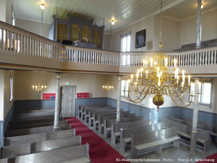 Døpefonten sies å være laget av Johs. Flatjord. Kirkens to klokker er støpt i 1850 (Lars Rustad) og 1989. Kirken sies å ha et Olsen & Jørgensen-orgel fra 1913. Dette ble i 2008 rapportert å være suboptimalt, men reparerbart. Undertegnede kjenner ikke til hva som eventuelt er gjort med orgelet siden.