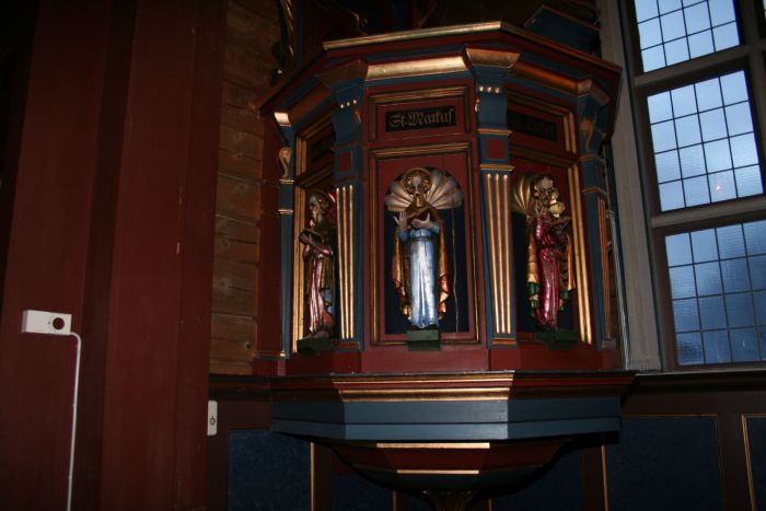 Fra denne kirken er det bevart en barokk altertavle på Vitenskapsmuseet i Trondheim. Tre dører som ble solgt på auksjon da kirken ble revet, sies å være i privat eie i området (og er avbildet i jubileumsboken fra 2013). Dette gjelder også en planke med datering 1753, da kirken visstnok ble utvidet.