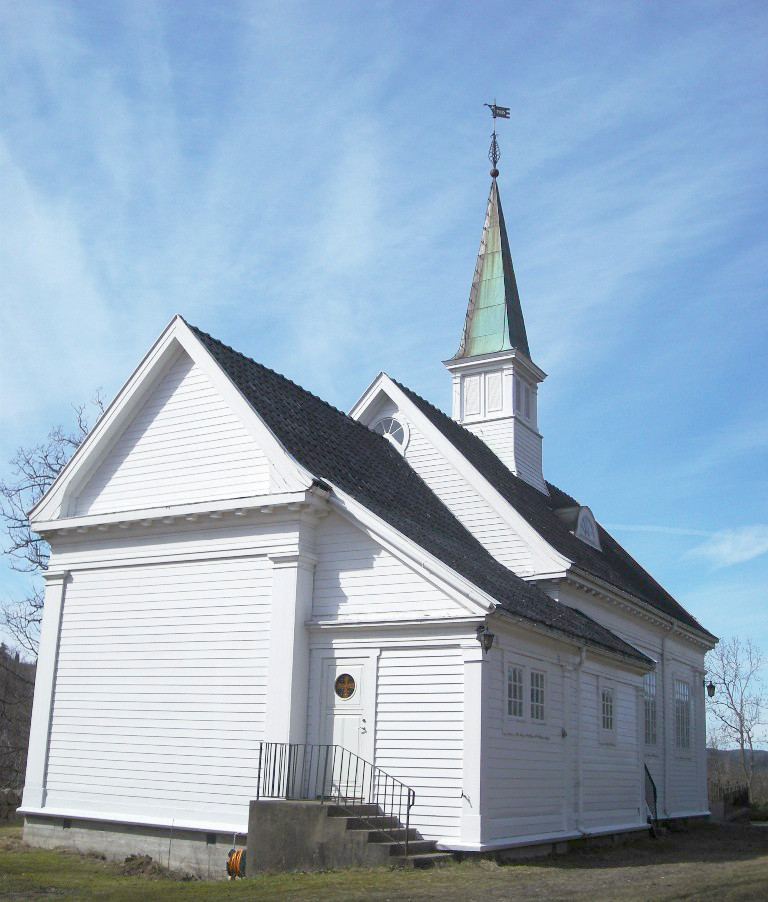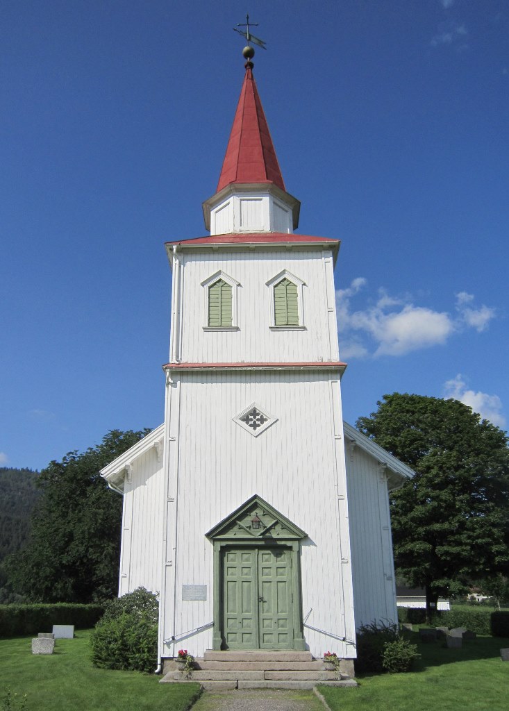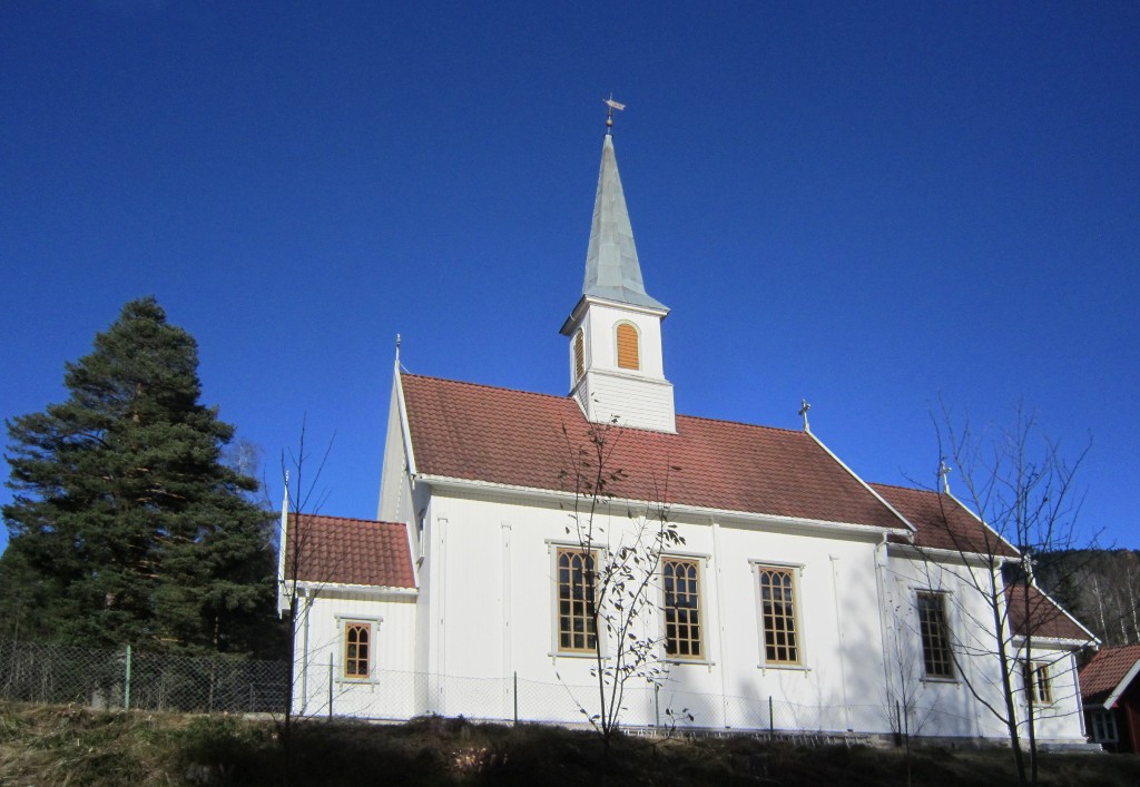 Byggingen var resultat av en viss tids arbeid med å samle inn midler og få gjennomført prosjektet, ledet av en lokal fabrikkeier. Arkitekt var Halfdan Berle, som også har utformet altertavlen. Byggingen startet ifølge kildene i 1905, og kirken ble innviet i samme år, som også står på vindfløyen i spiret, så det ble nok arbeidet effektivt.