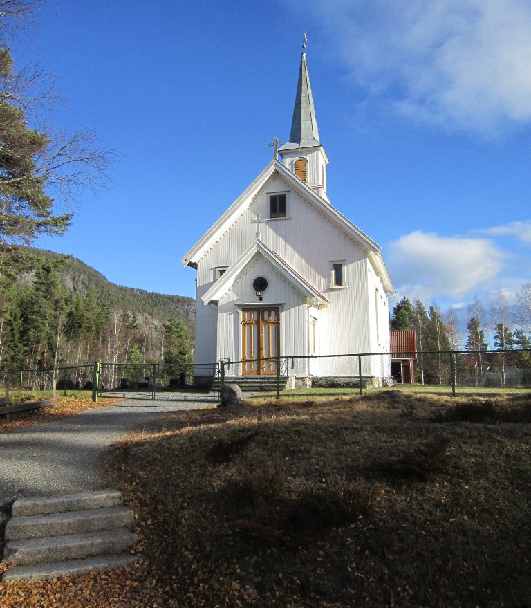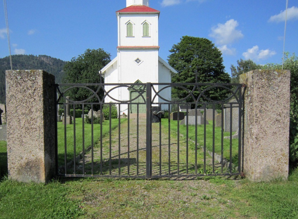 Kirkegården ligger ved gamlekirken, som altså brukes til begravelser, og som fortsatt er populær også til vielser.