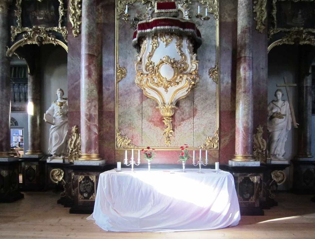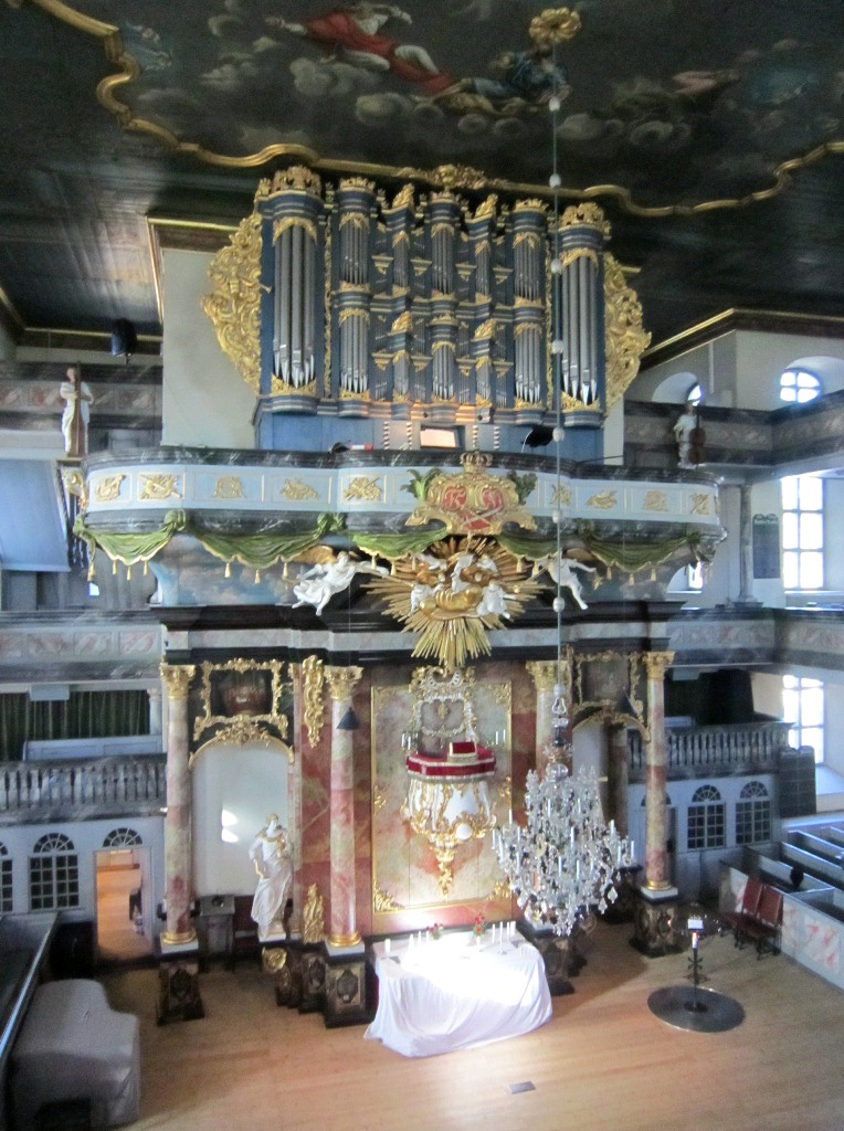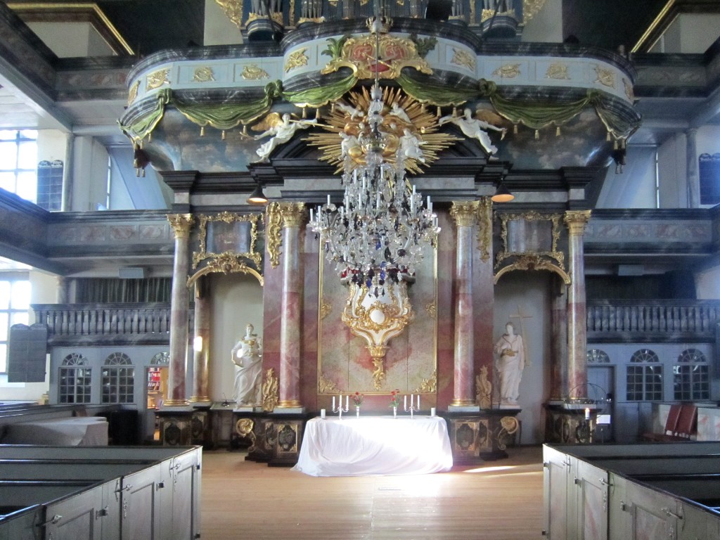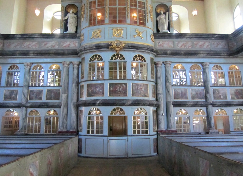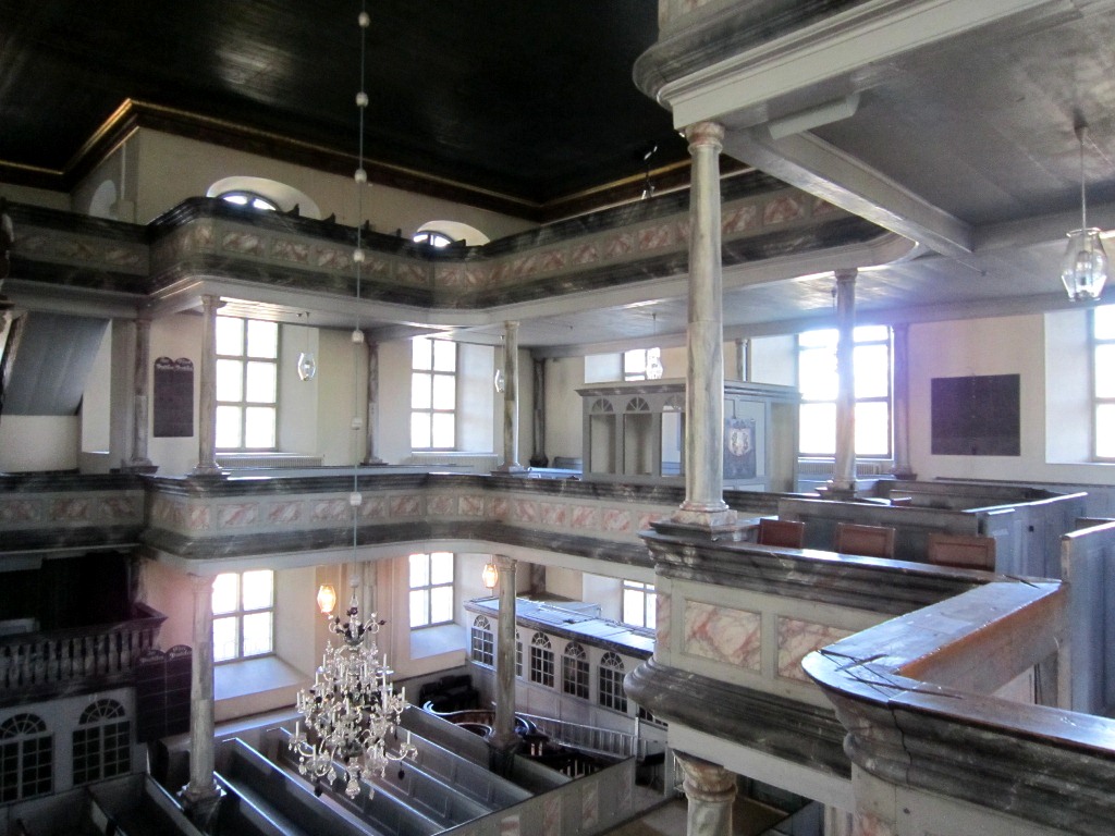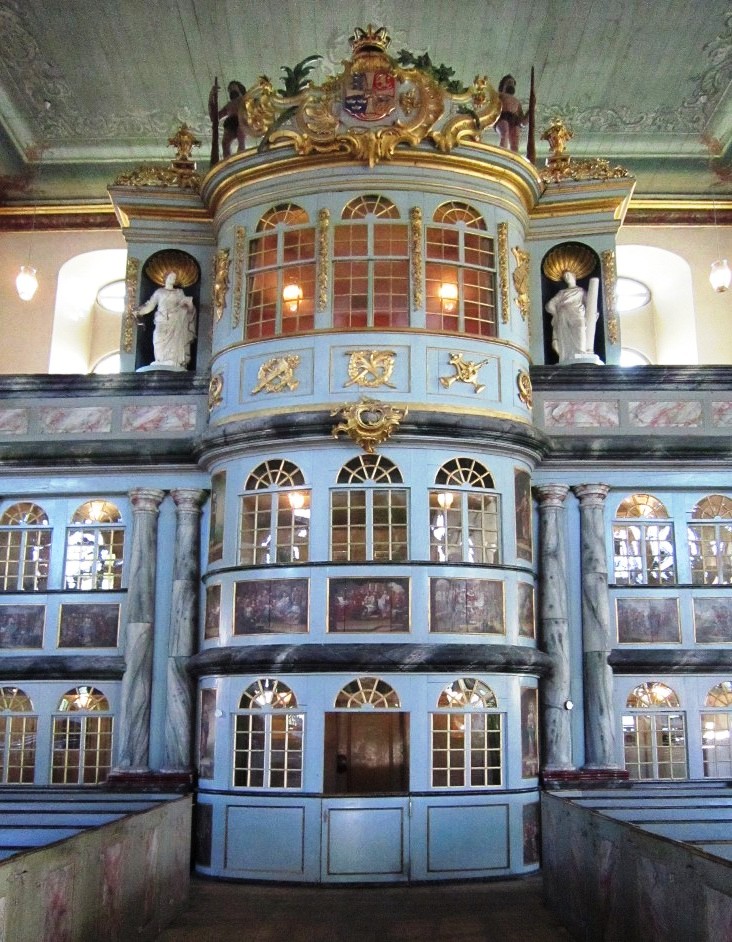 Rundt store deler av kirkerommet er det gallerier i to etasjer, men de mest fornemme plassene finner vi i den såkalte Kongestolveggen i øst. I den inngår en rekke lukkede stoler (pulpiturer) for ledelsen ved bergverket. I midten finner vi nederst den såkalte brudelosjen, så losjen til oberberghauptmannen og hans medarbeidere og øverst kongelosjen. Kongestolveggen fikk innsatt riksvåpenet i 1818. Mellom første og annen etasje er en rekke motiver fra Jesu liv malt av Niels Thaaring. Langt mer kunne nevnes.